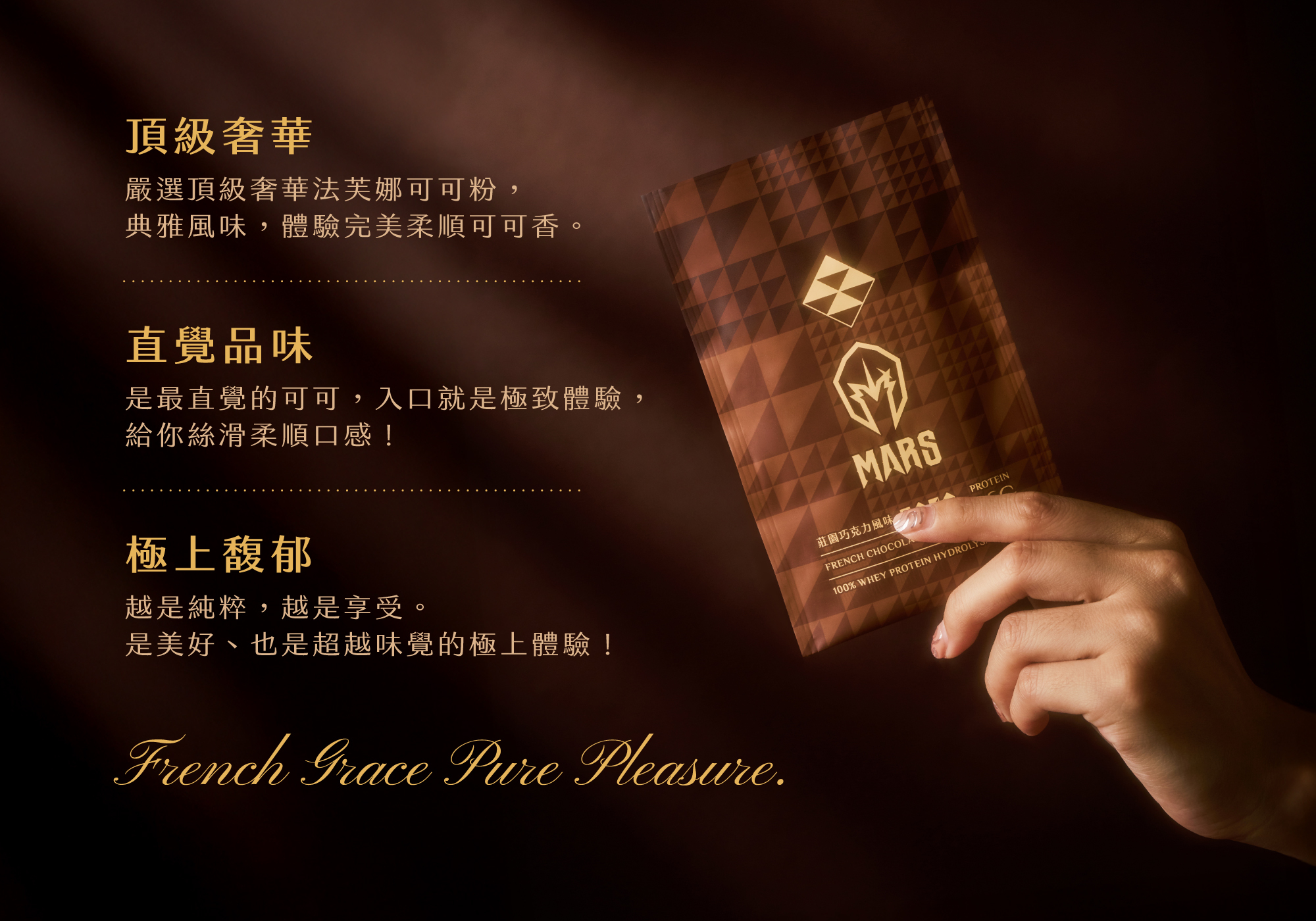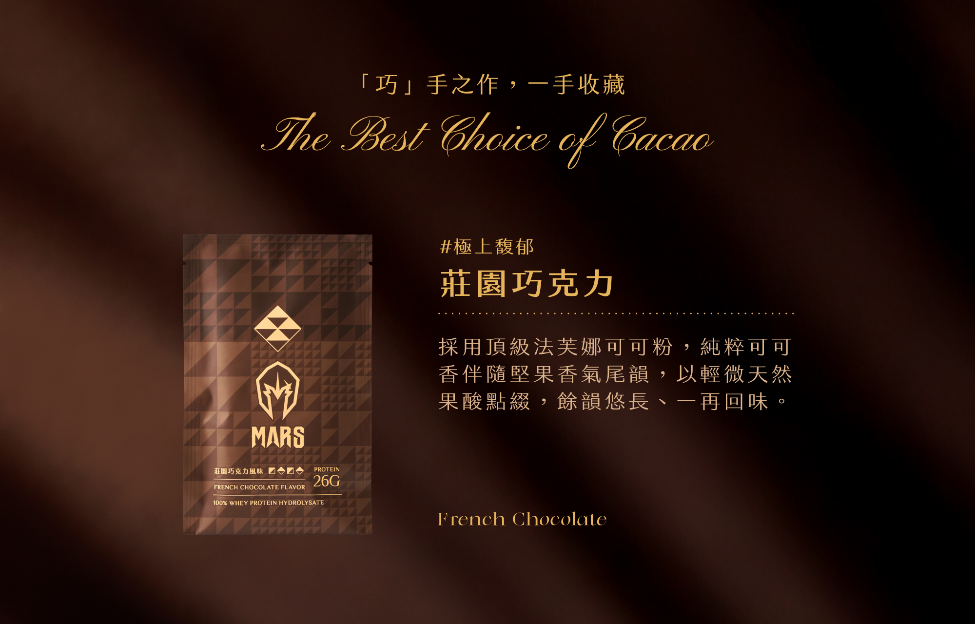 可可香伴隨堅果香氣尾韻,以輕微天然果酸點綴,餘韻悠長、一再回味。