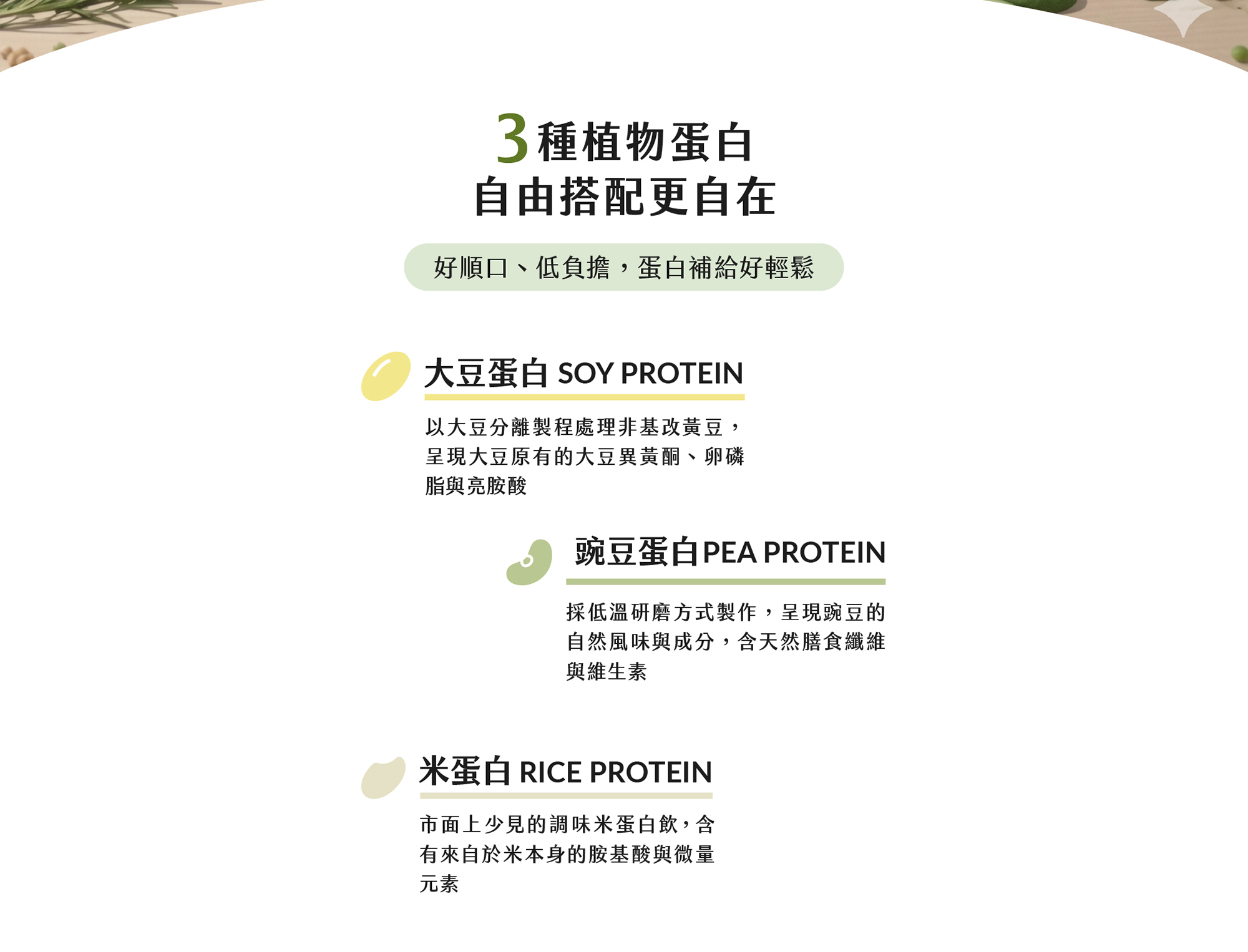✓ 優質植物性蛋白-大豆/豌豆/米蛋白